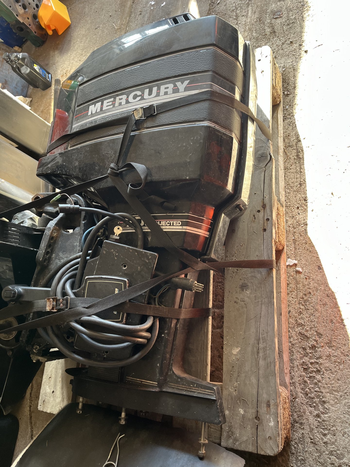 Säljer en beg 90 HK mercury som enligt säljare ska starta på startgas och gå fint. Står 70 på kåpa men är 90 hk. Skedda lite skadad men är nog inga problem artiklar som den är. Har inte själv haft igång den. Reglage finns men propeller saknas.